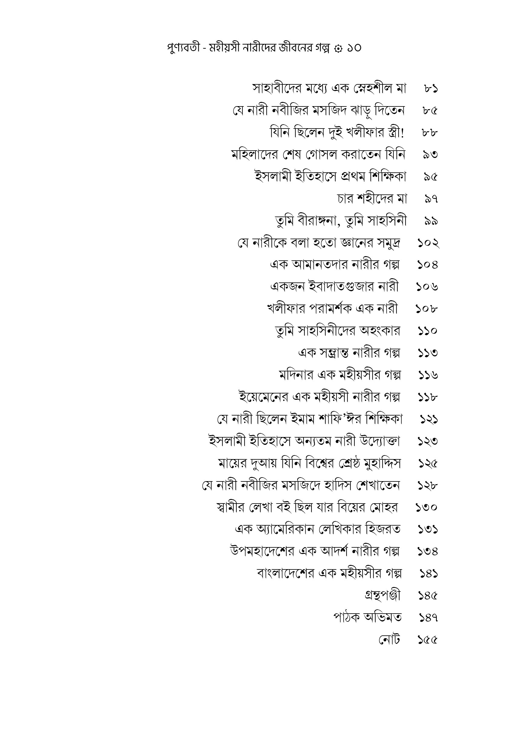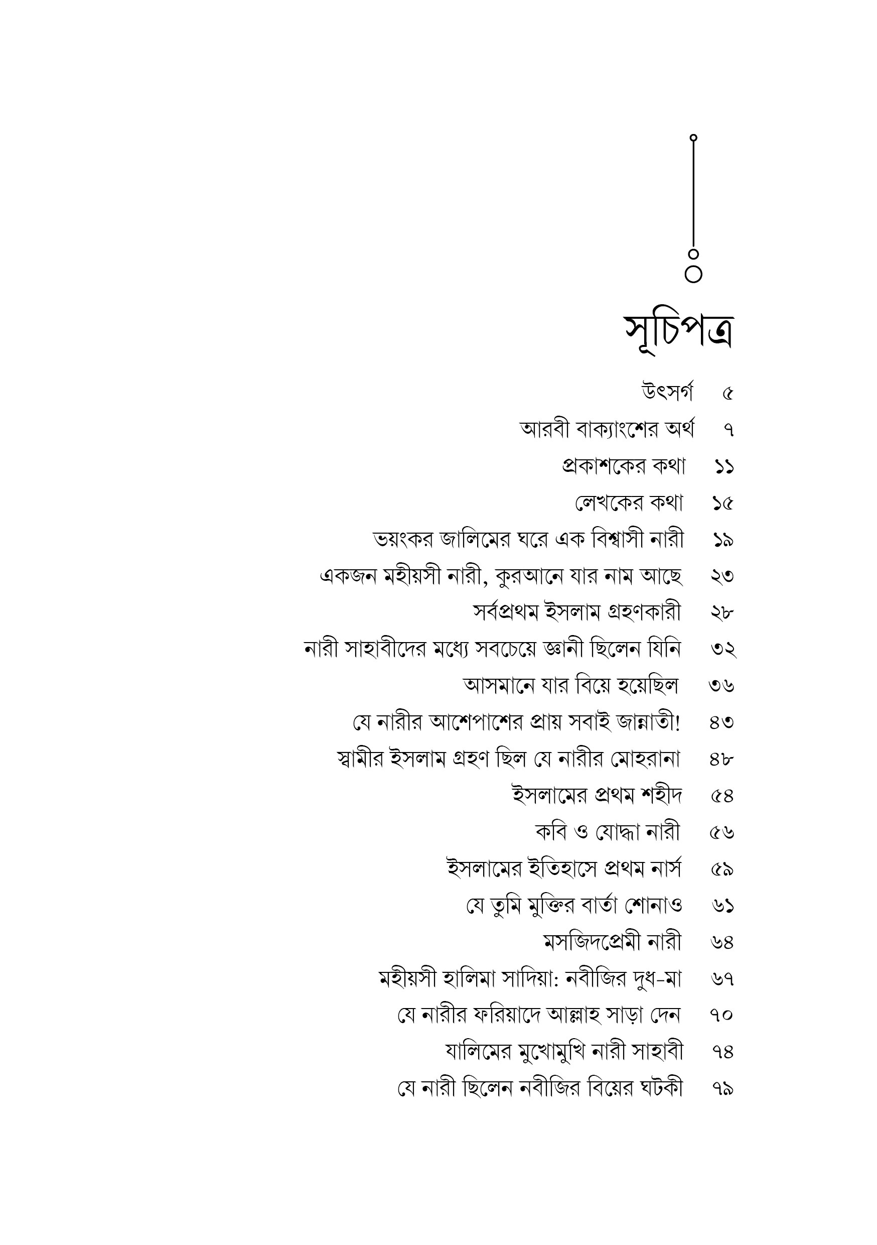 এই বইয়ে যেমন আলোচিত হয়েছে তিন স্বর্ণযুগ স্পর্শ করা নারীদের চিত্র, তেমনি আলোচিত হয়েছে এই উপমহাদেশের মহীয়সী নারীদেরও গল্প। আশা করছি তাদের সংক্ষিপ্ত কিন্তু ঈমানদীপ্ত গল্পগুলো পড়ে আমাদের নারীরা পাথেয় সংগ্রহ করে নিজেদের জীবনকে আলোকিত করতে পারবেন।